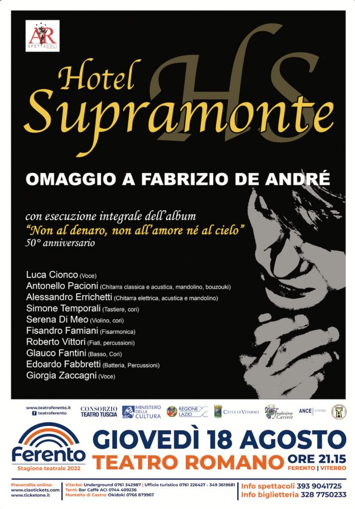 Giovedì 18 agosto, nell’ambito della stagione 2022 di Ferento, Hotel Supramonte in concerto con un omaggio a Frabrizio De André.