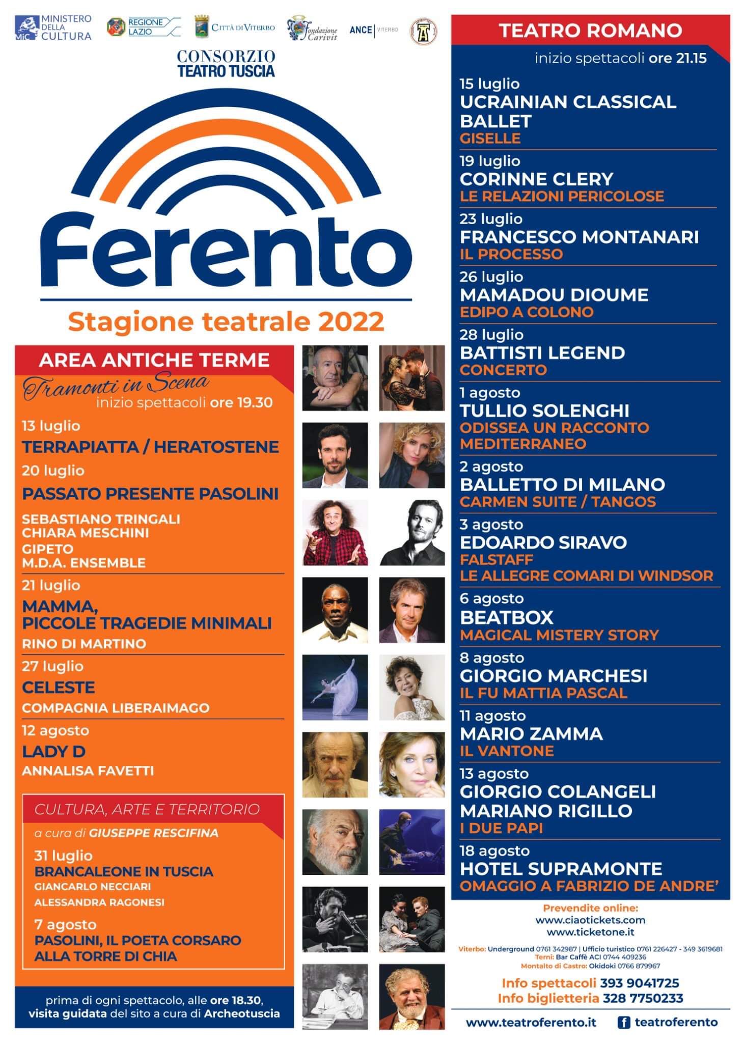 Situato nell’area archeologica dell’antica città di Ferento, il Teatro Romano ospita da oltre cinquant’anni una ricca stagione estiva.